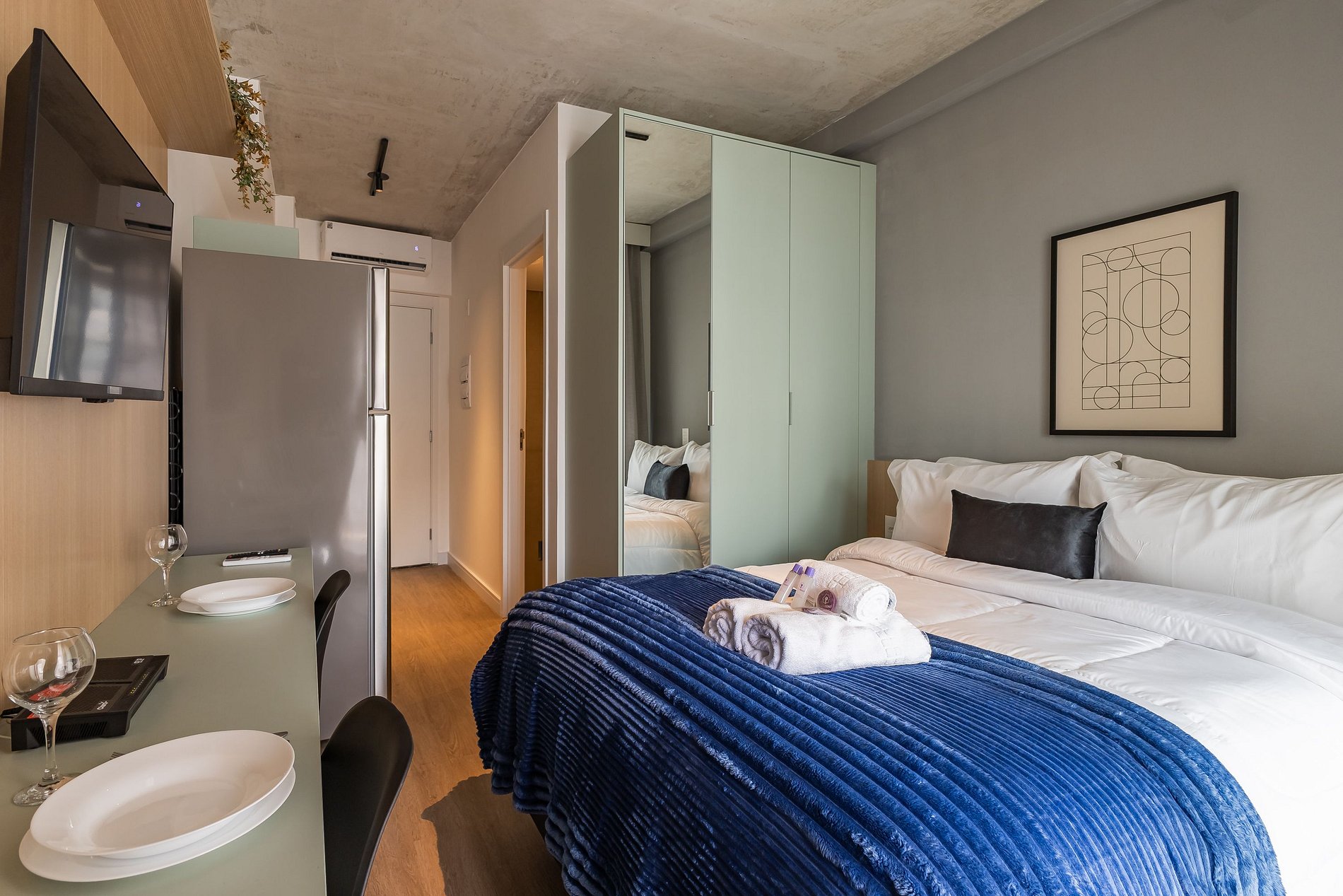 O apartamento foi planejado para trazer praticidade e uma estadia agradável.