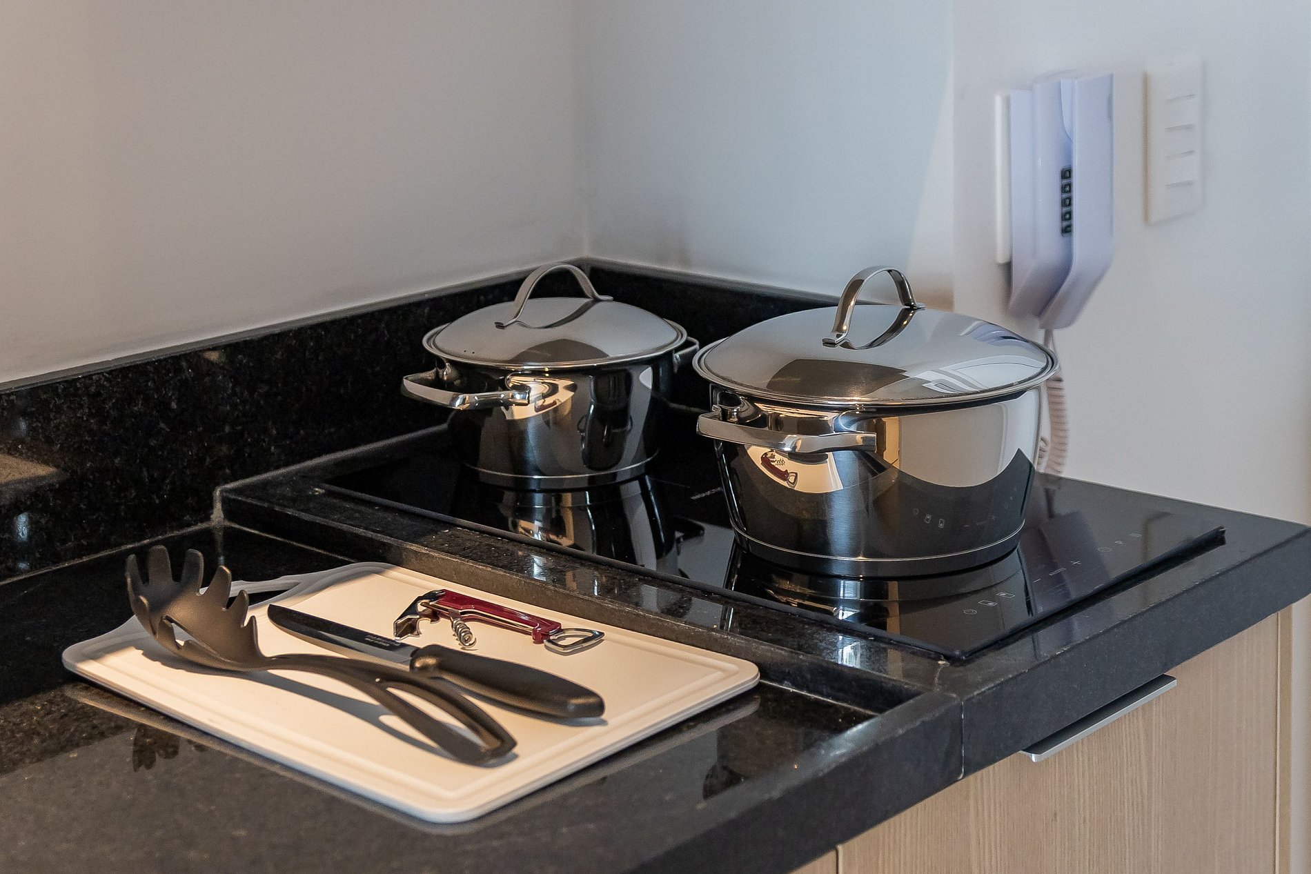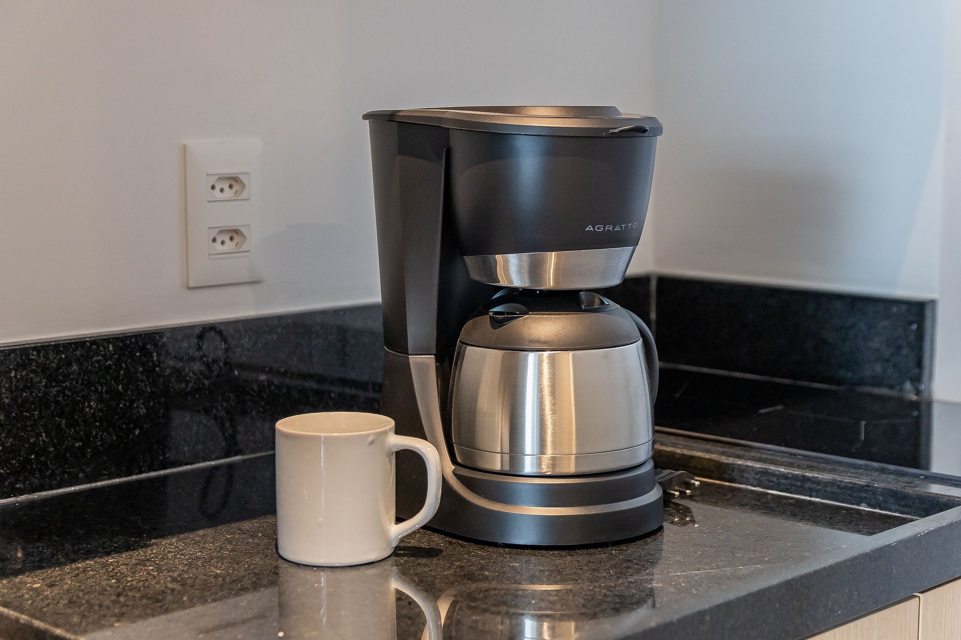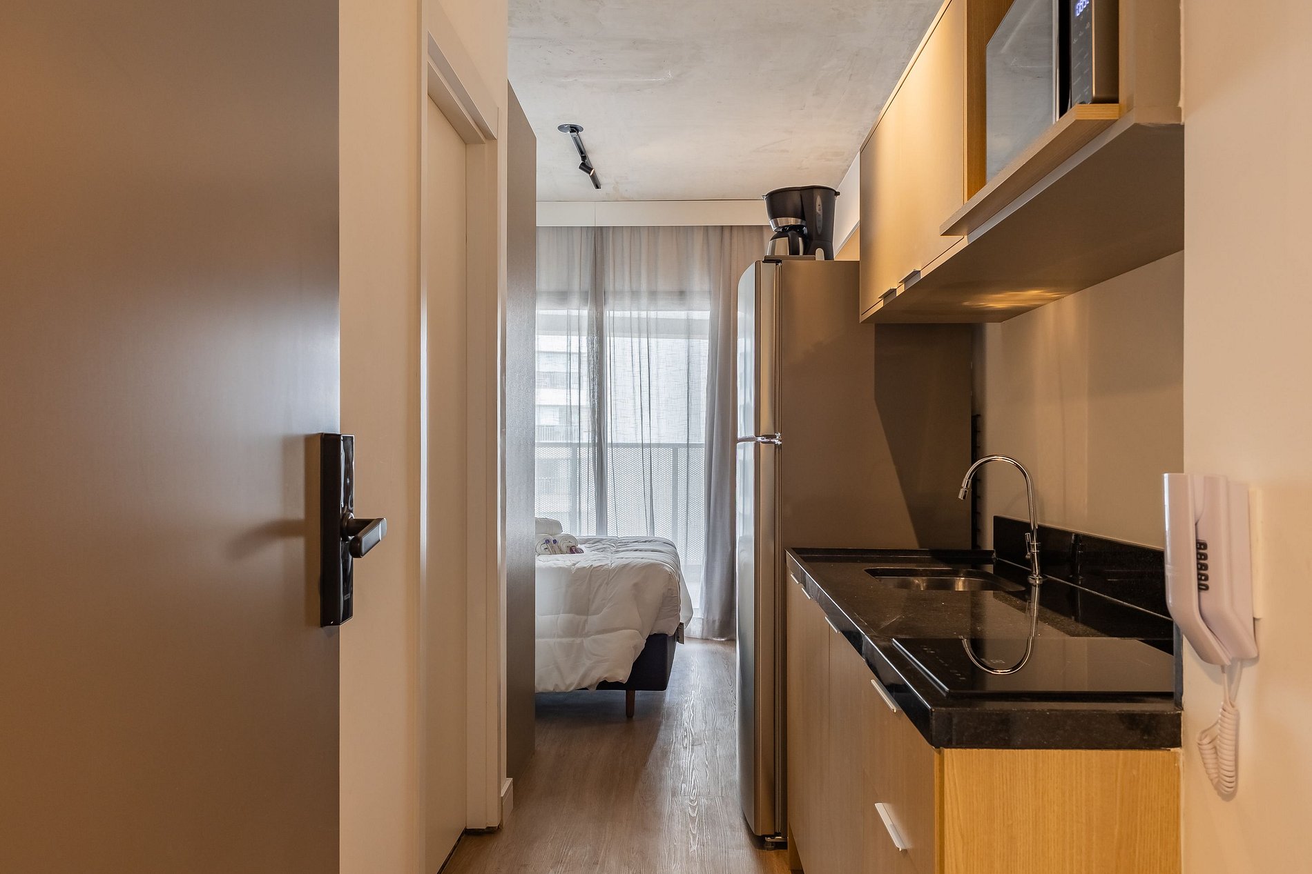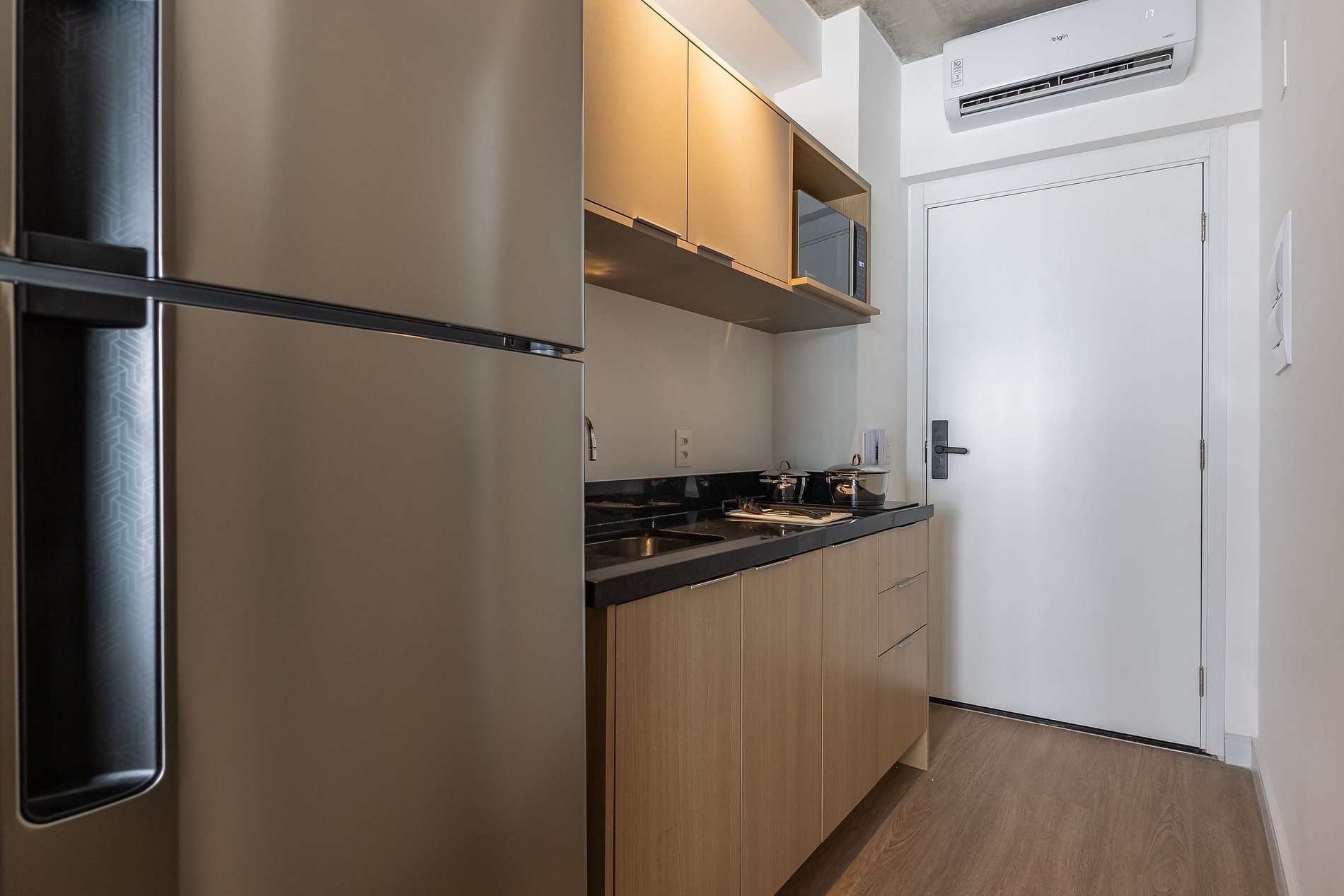 A cozinha equipada com itens básicos permite o preparo de pequenas refeições, garantindo mais autonomia no dia a dia.