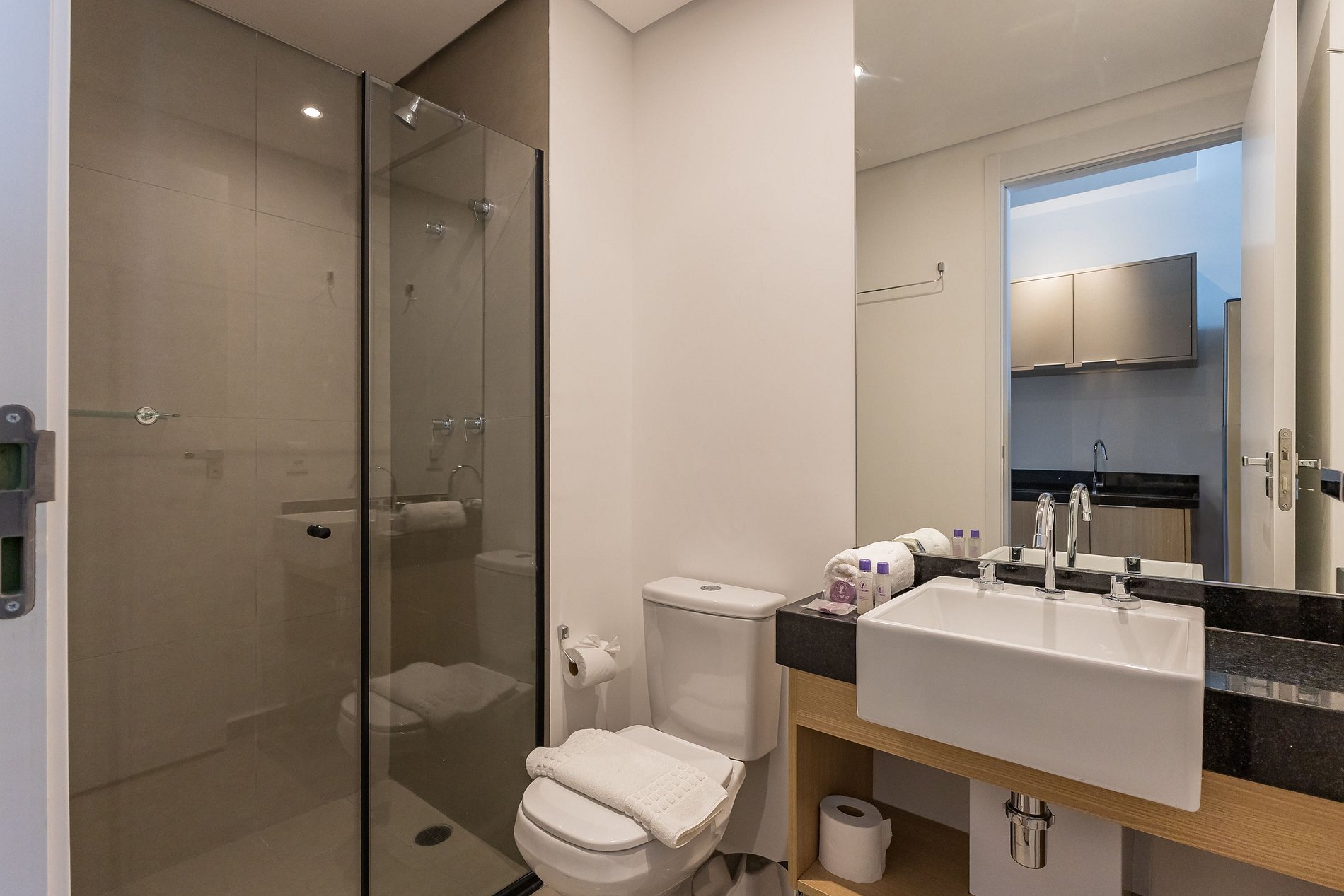 Por fim, o banheiro com secador de cabelo traz ainda mais praticidade para a sua rotina.