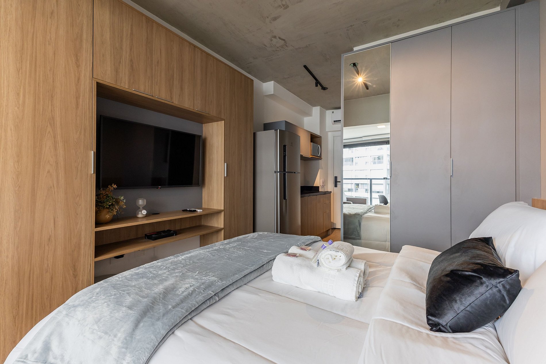 Você conta com internet Wi-Fi de 250MB e TV Smart, lembrando apenas que não disponibilizamos login para as plataformas de streaming.