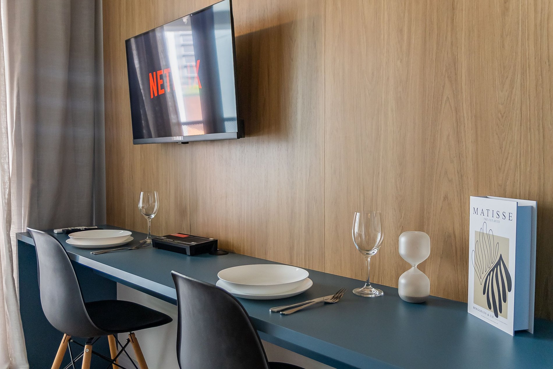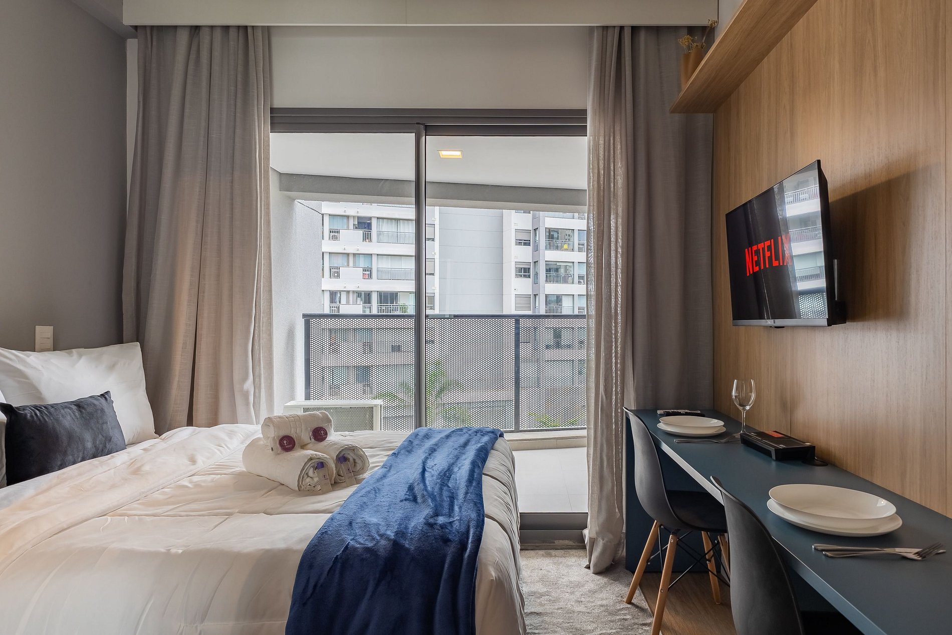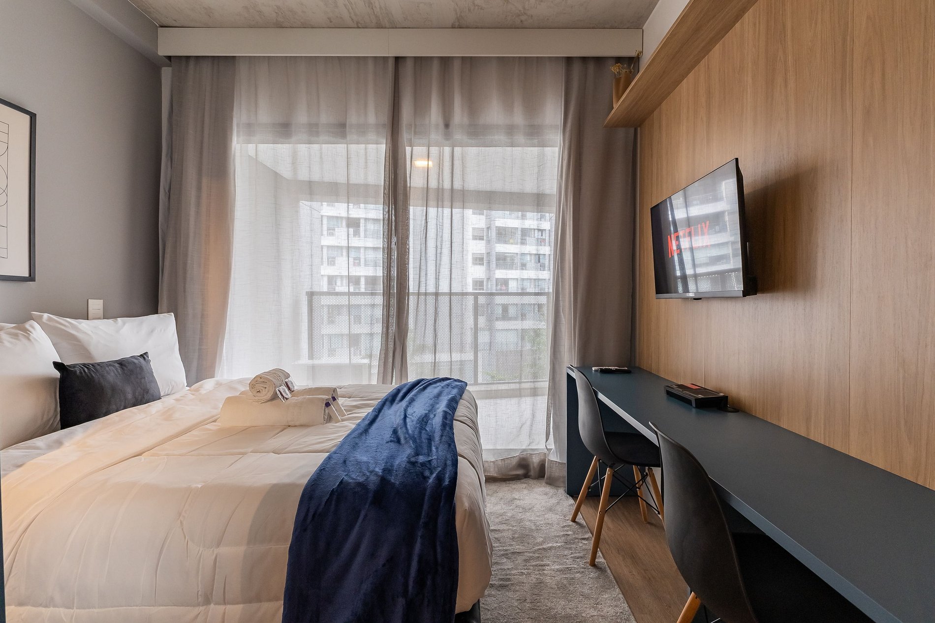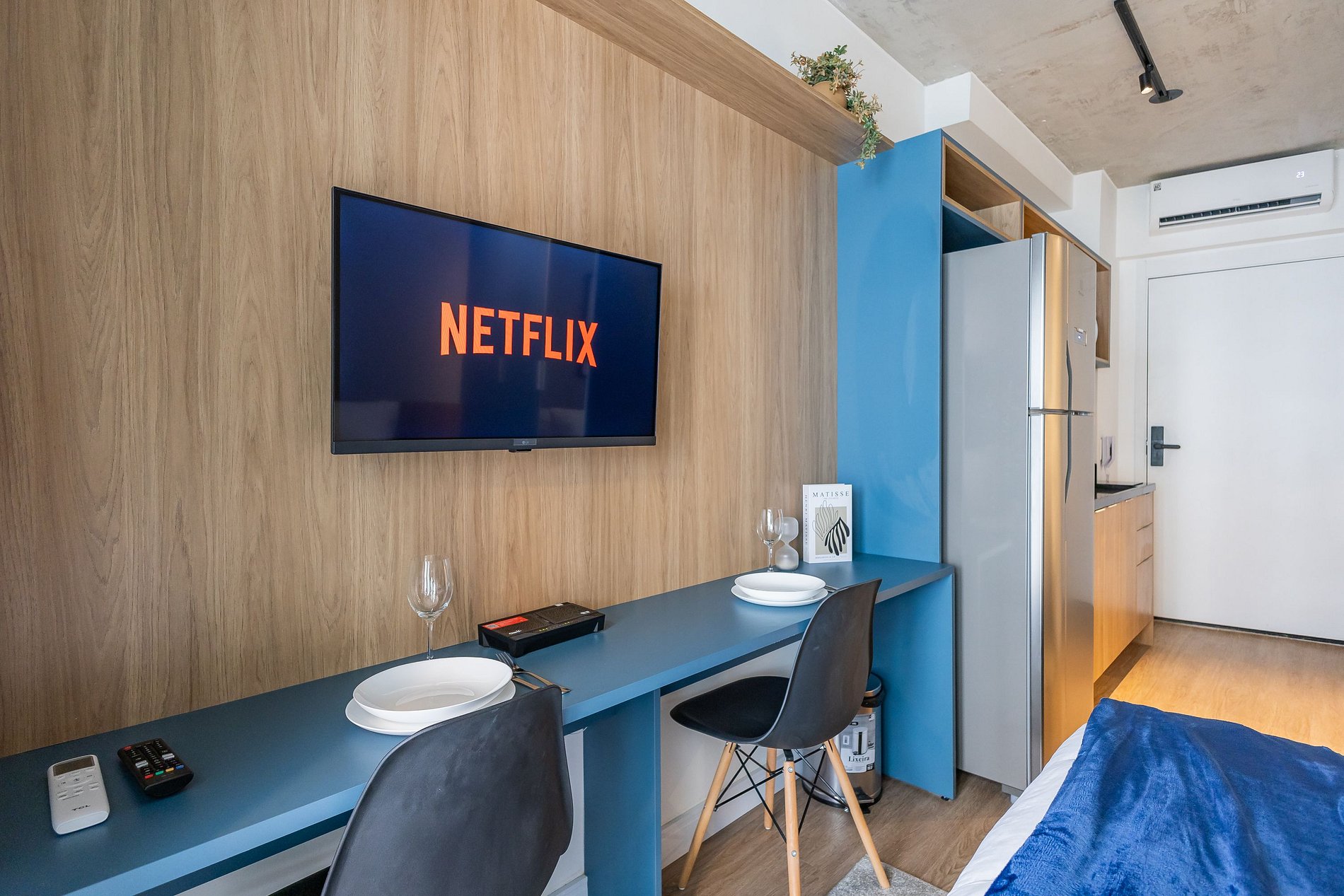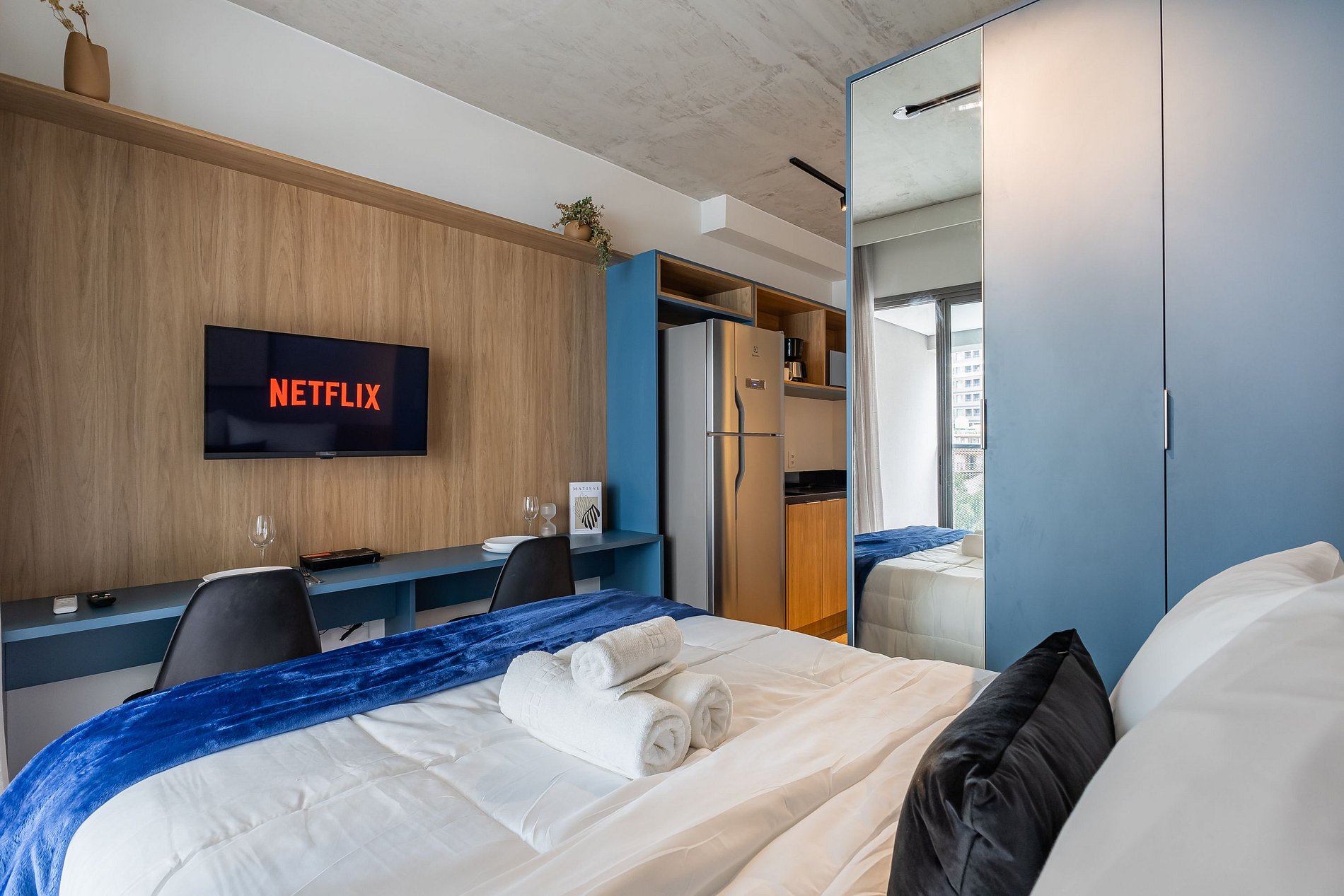 Você conta com internet Wi-Fi de 250MB e TV Smart, lembrando apenas que não disponibilizamos login para as plataformas de streaming.