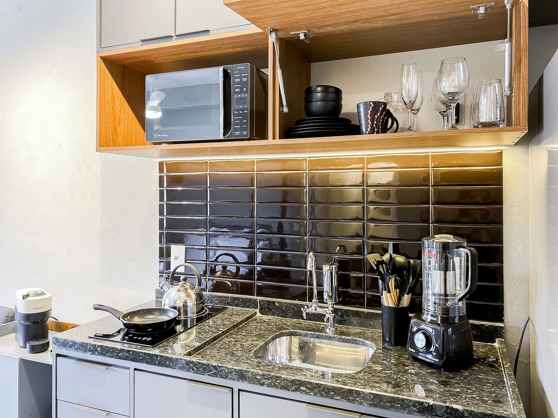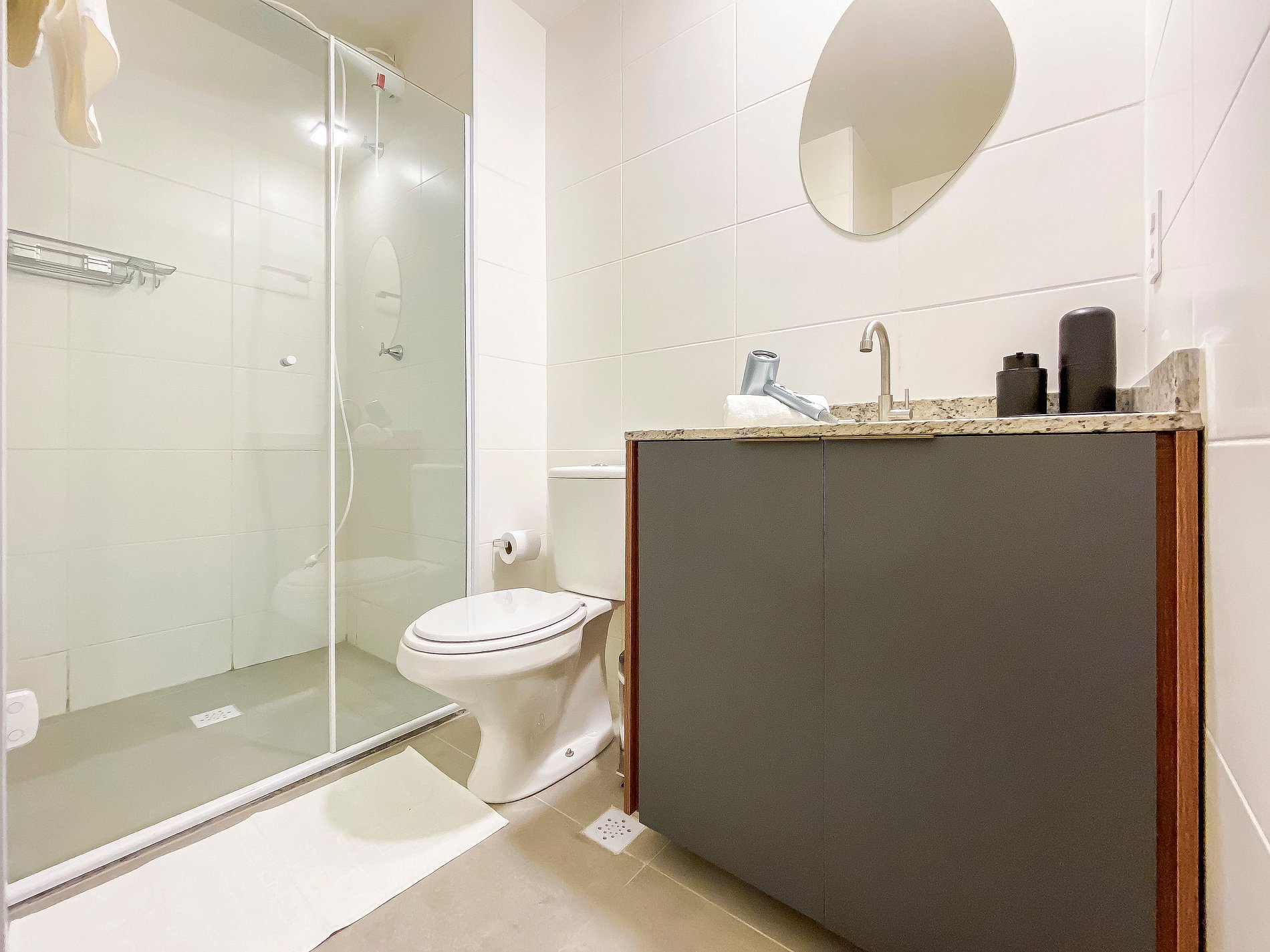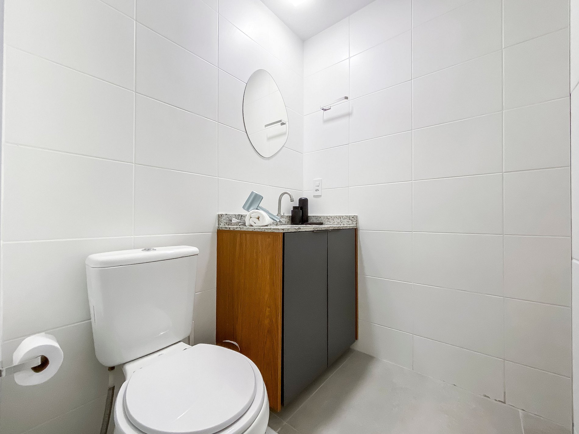 Oferecemos tudo o que você precisa! Desde jogo de cama/banho até utensílios do dia a dia. - Internet Wi-Fi 250 Mbps - Smart TV 40" (não disponibilizamos login de acesso nas plataformas de streaming) - Cozinha equipada - Roupas de cama - Toalhas - Portaria 24 horas - O condomínio ainda conta com piscina, academia, lavanderia e espaço de co-working