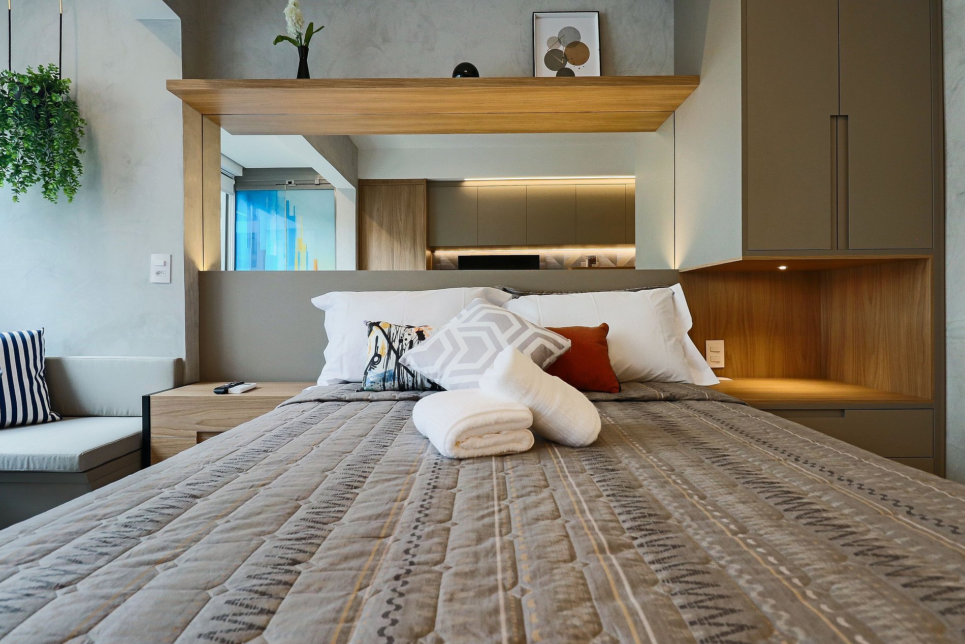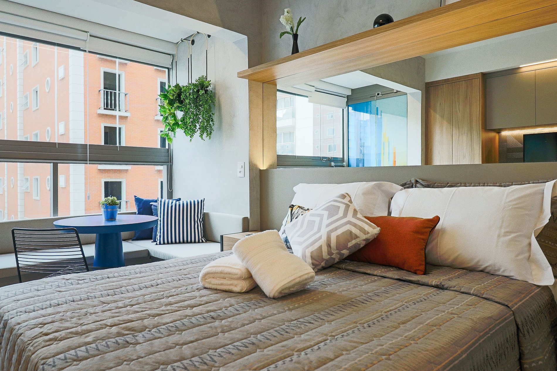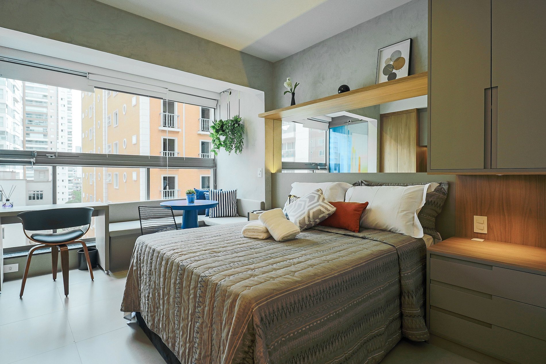 - O condomínio ainda conta com piscina, academia, espaço de coworking e lavanderia
