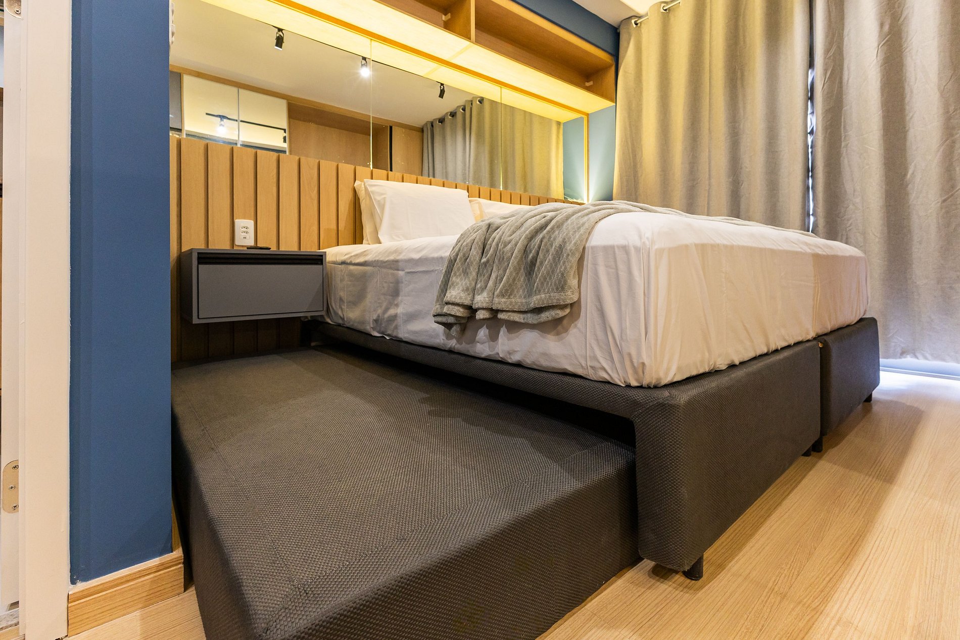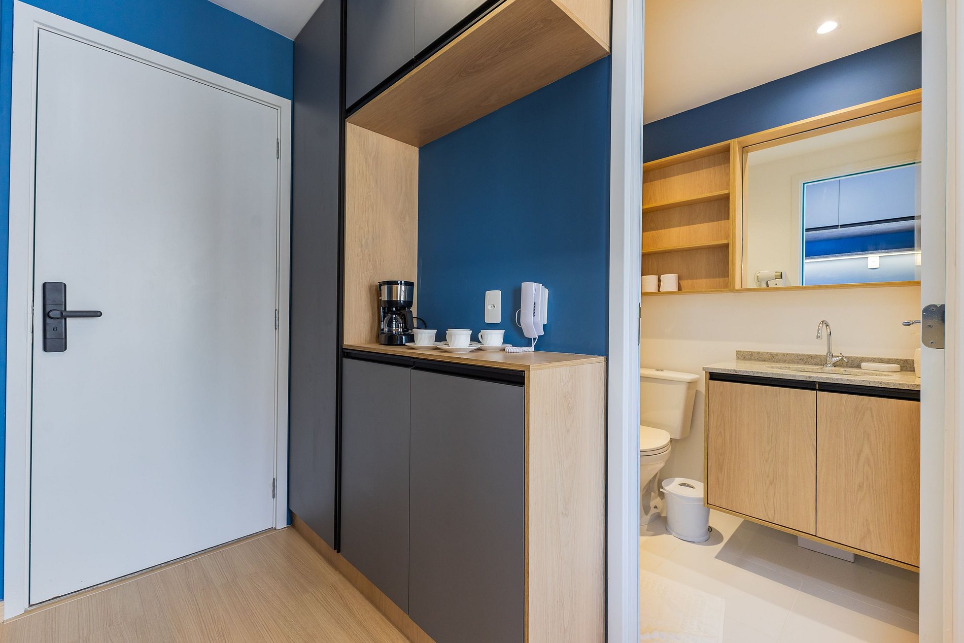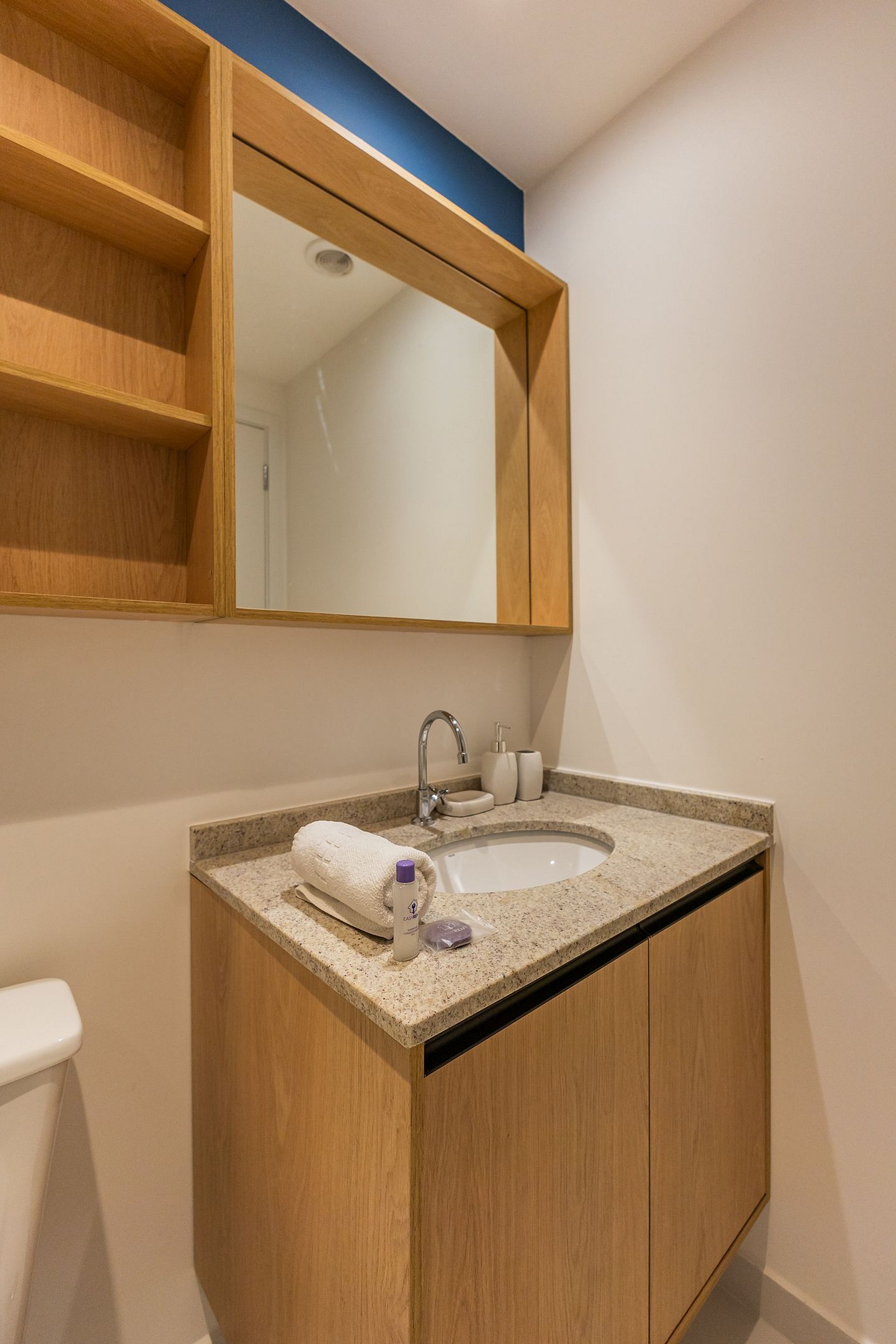 - O condomínio ainda conta com piscina, academia, espaço de coworking e lavanderia
