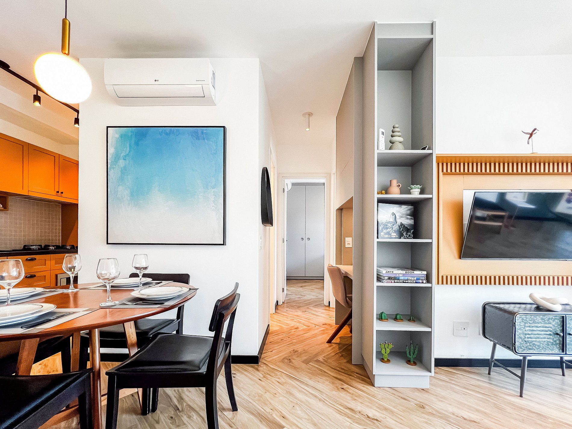 O espaço é um fantástico apartamento novíssimo, montado para atender todas as funcionalidades de um apartamento para locação Airbnb, pensado com muito carinho e muito bom gosto.