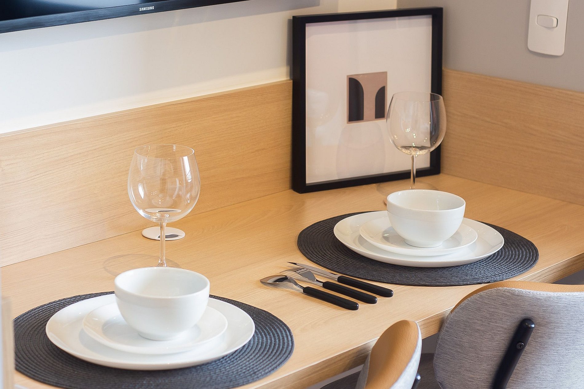 - O condomínio ainda conta com academia, piscina, lavanderia e espaço co-working