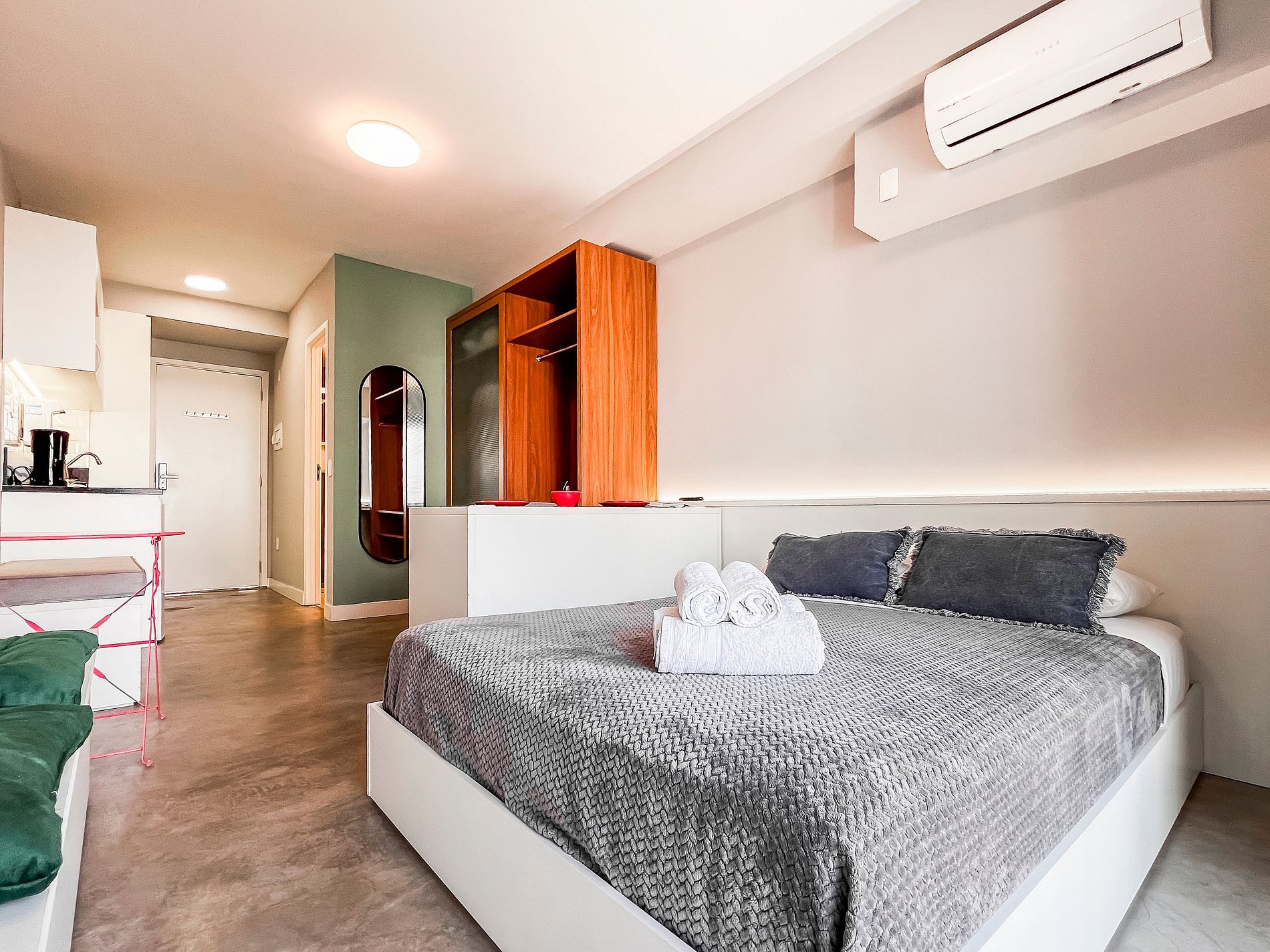 - O condomínio ainda conta com piscina, academia, espaço de coworking e lavanderia