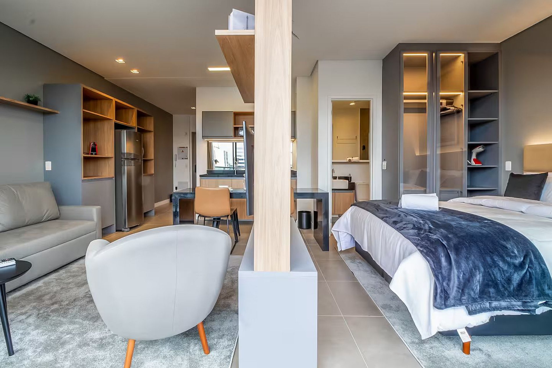 O hóspede também pode contar com as conveniências do prédio: - Piscina - Academia - Lavanderia - Espaço de co-working - Portaria 24 horas